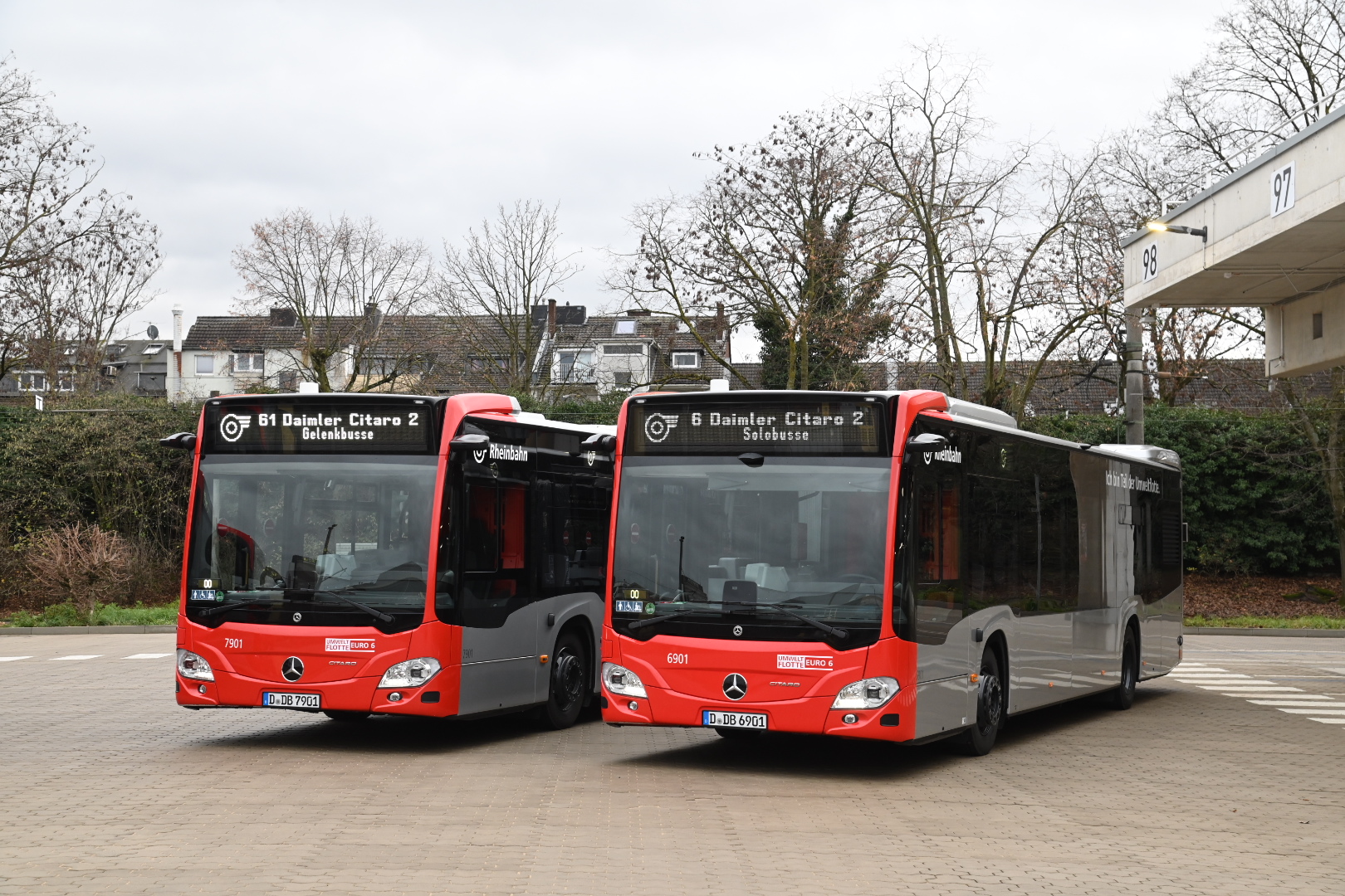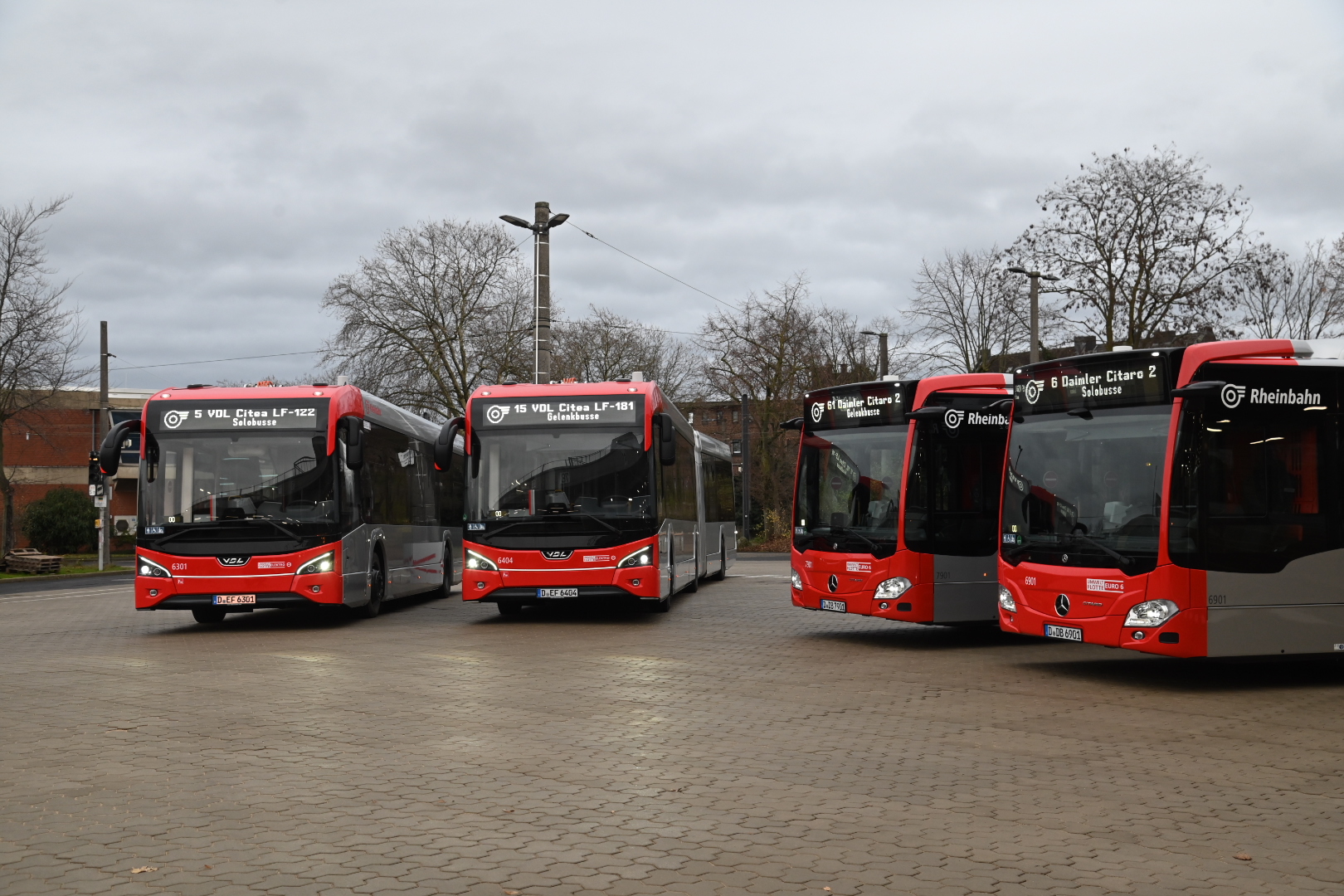 Die Rheinbahn hat am Freitag, dem 19. Dezember 2025, die ersten Exemplare von insgesamt 87 neuen Omnibussen vorgestellt, die in den nächsten Monaten in den Liniendienst übernommen werden. Es handelt sich jeweils um Solo- und Gelenkwagen von VDL mit batterie-elektrischem Antrieb und um Citaro-Dieselbusse aus dem Hause Mercedes-Benz. Alle Modelle sind bisher nicht im Rheinbahn-Fuhrpark vorhanden. Im Einzelnen: